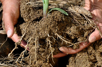 In checking the roots, Bev and his team found something intriguing: Corn roots in the finely aggregated soil grew straight. Those in larger-sized aggregates were wiggly. With smaller aggregates, the soil appeared to move out of the way as the roots lengthened. With larger aggregates the roots had to grow around.